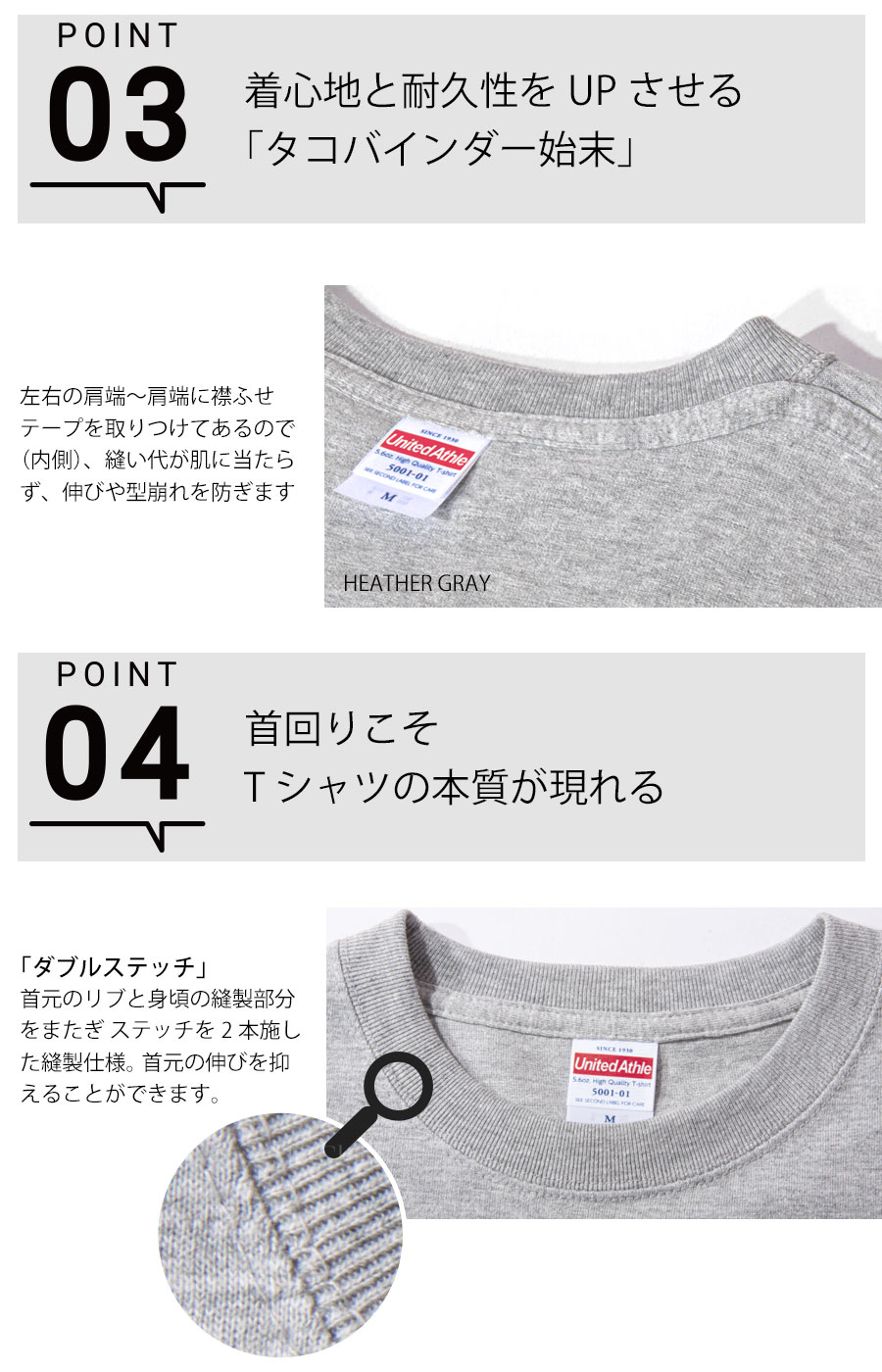 生地は数あるUnited AthleのTシャツの中でも肉厚となる7.1オンス生地を採用。