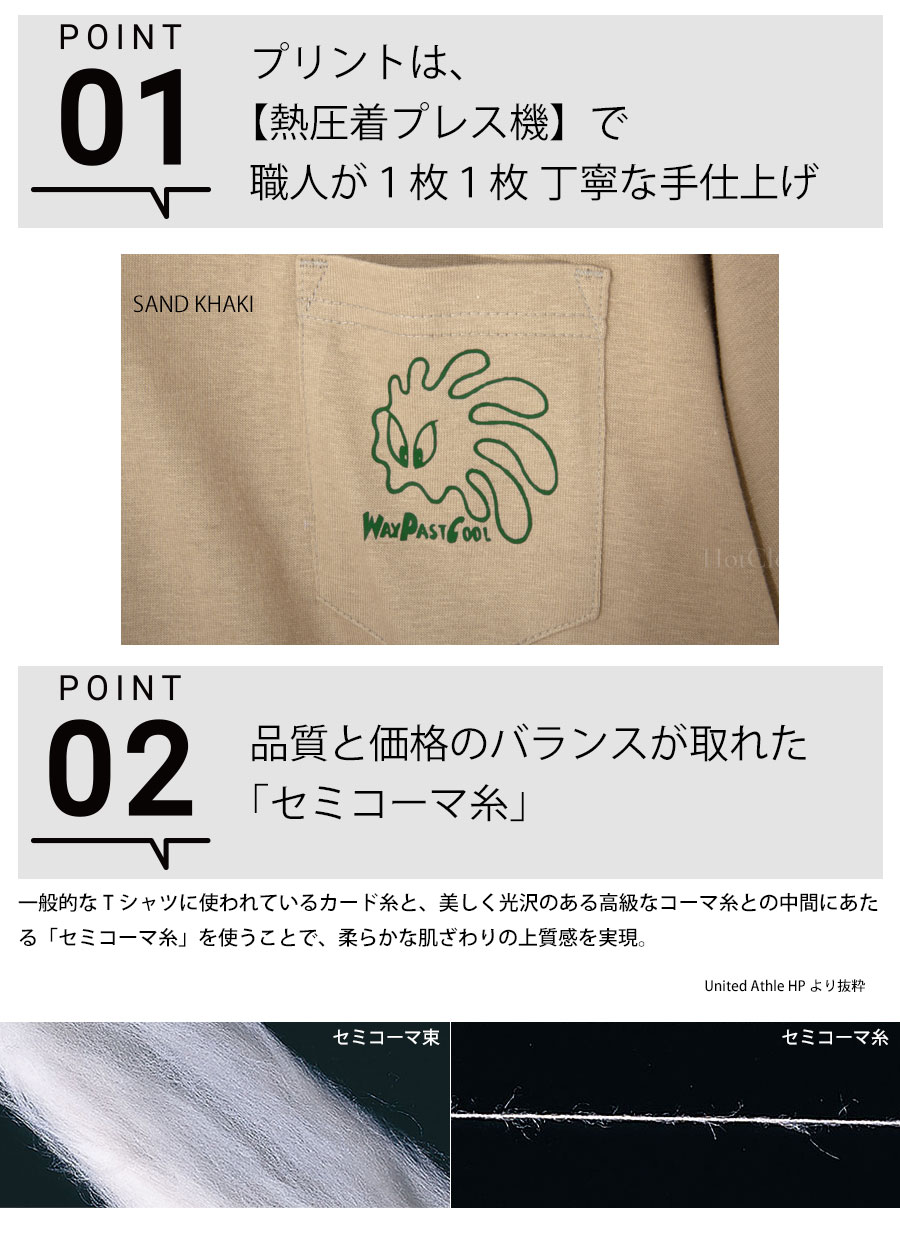 WPC uni君 WAYPASTCOOL プリント メンズ ビッグシルエット Tシャツ ポケット付 5.6オンス -hot-5008uni
