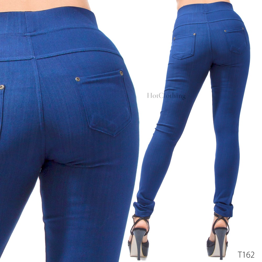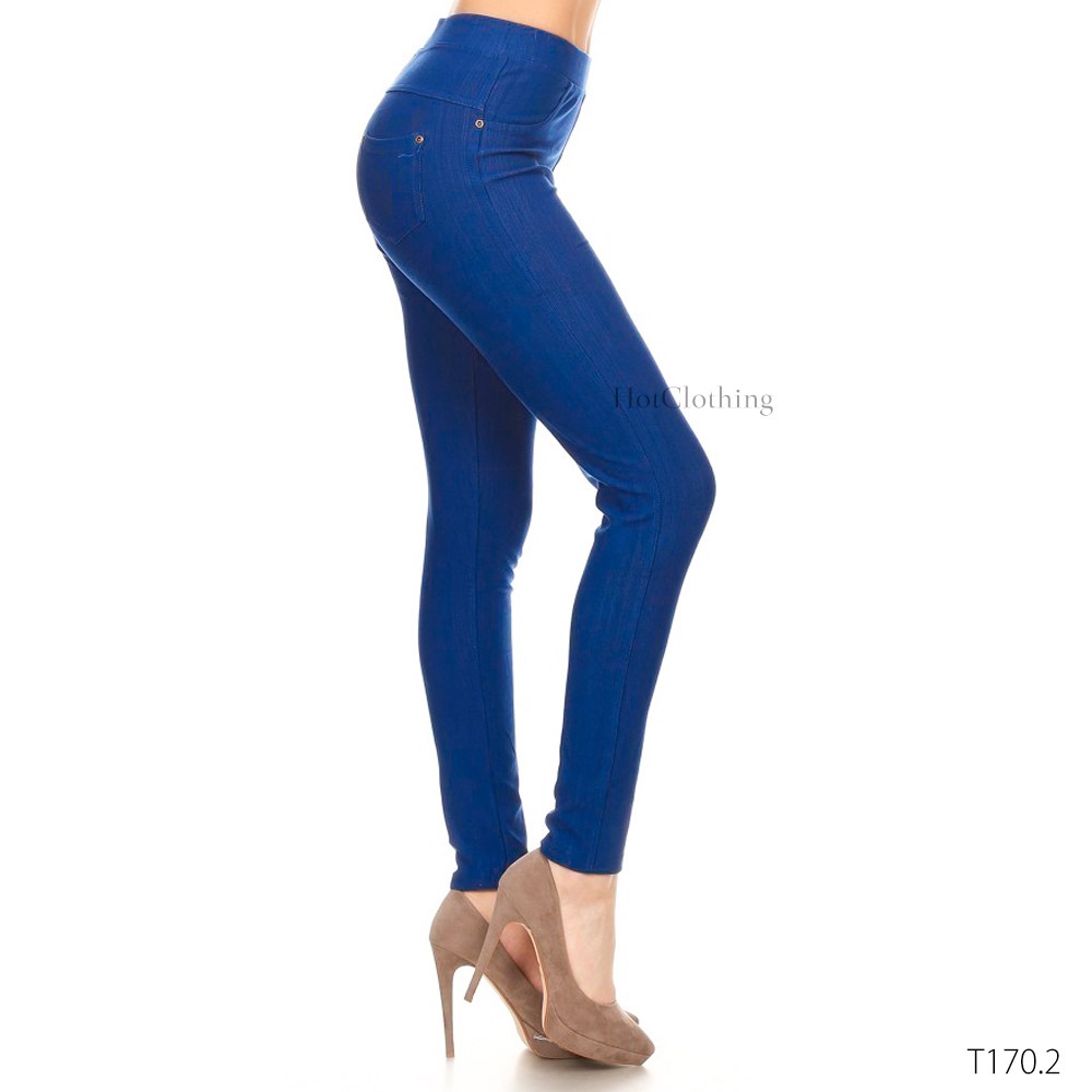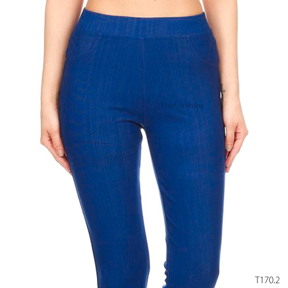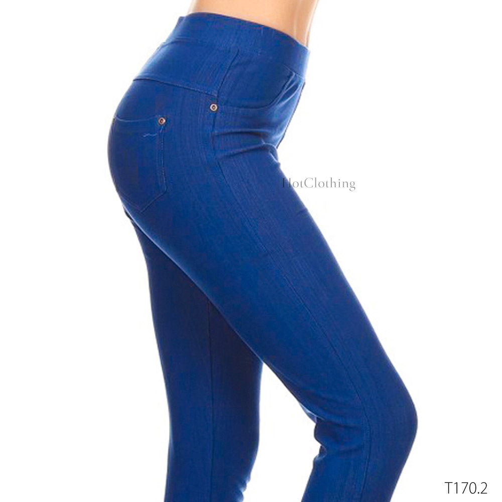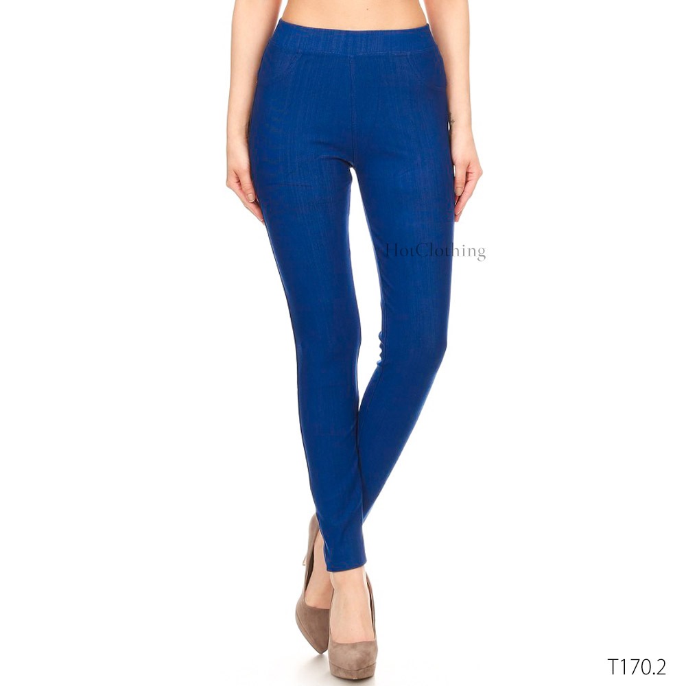伸びーーる!!デニム風 デニムブルーハイウエスト レギンス ポケット付 ジェギンス レディース コットンパンツ Leggings Depot ポケット付【LA★インポー ト】 -la-ldp-pt168