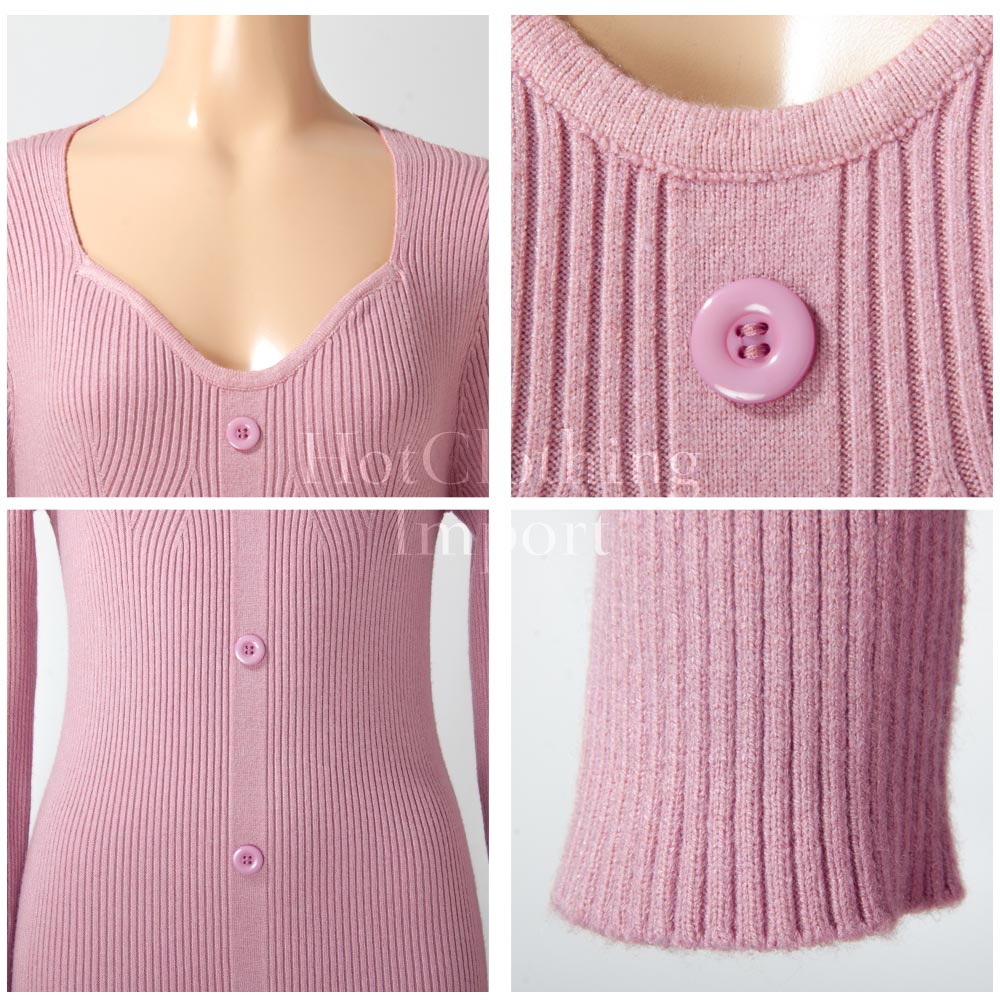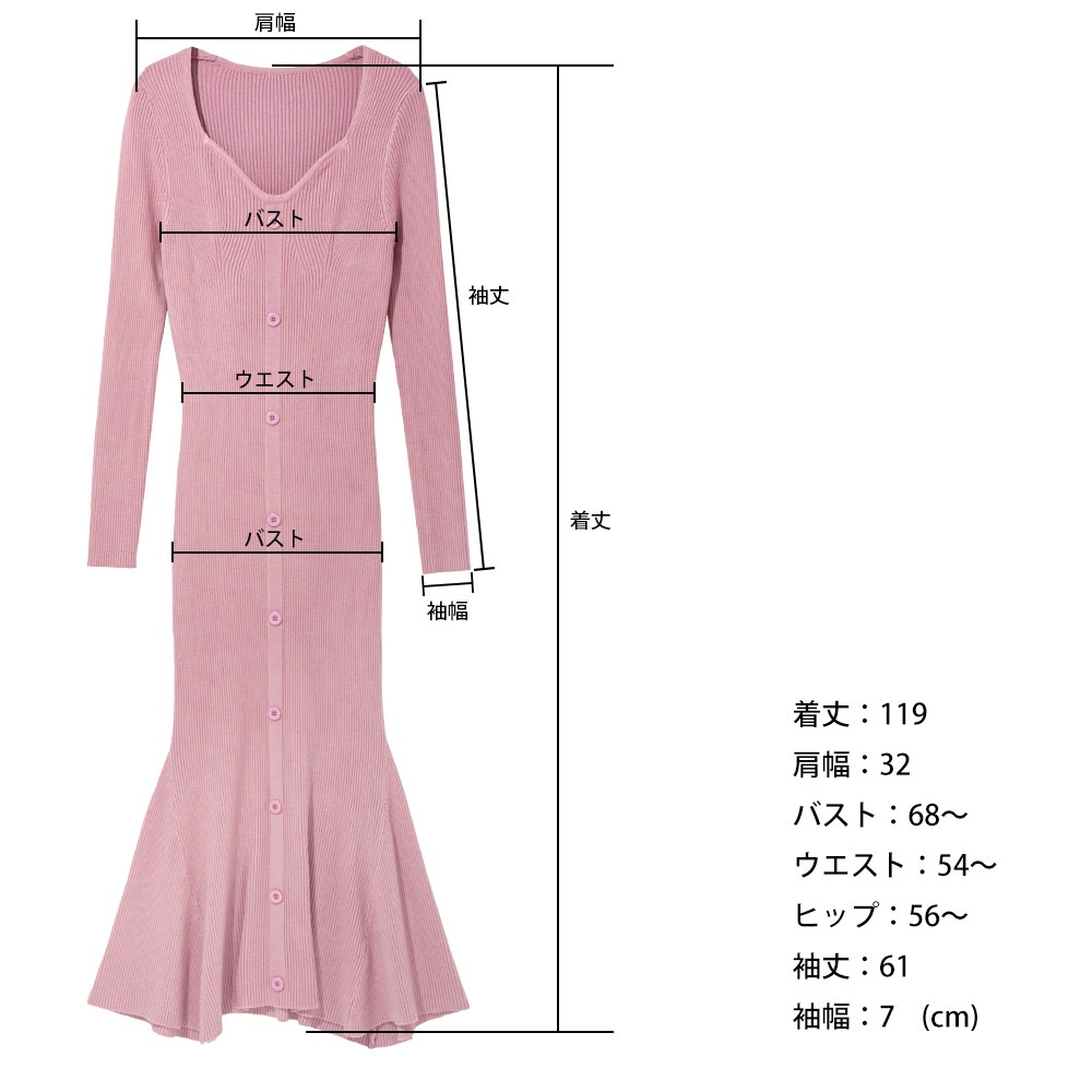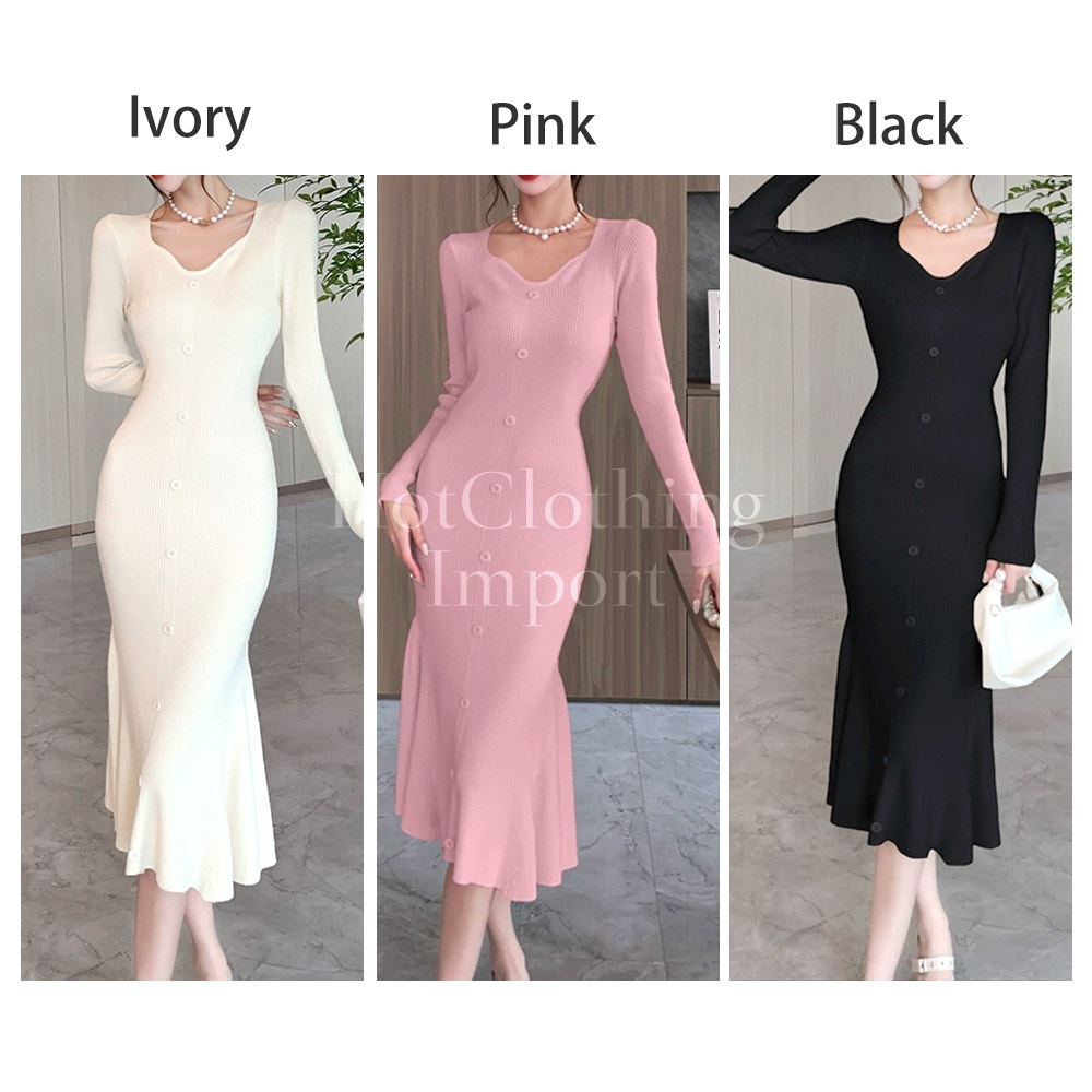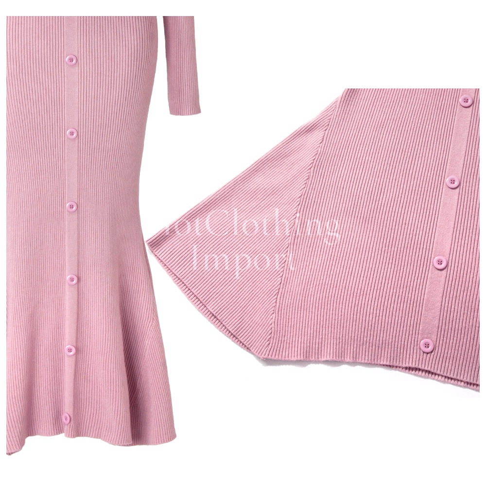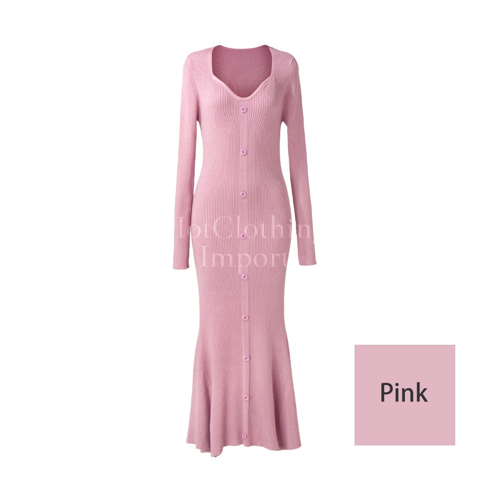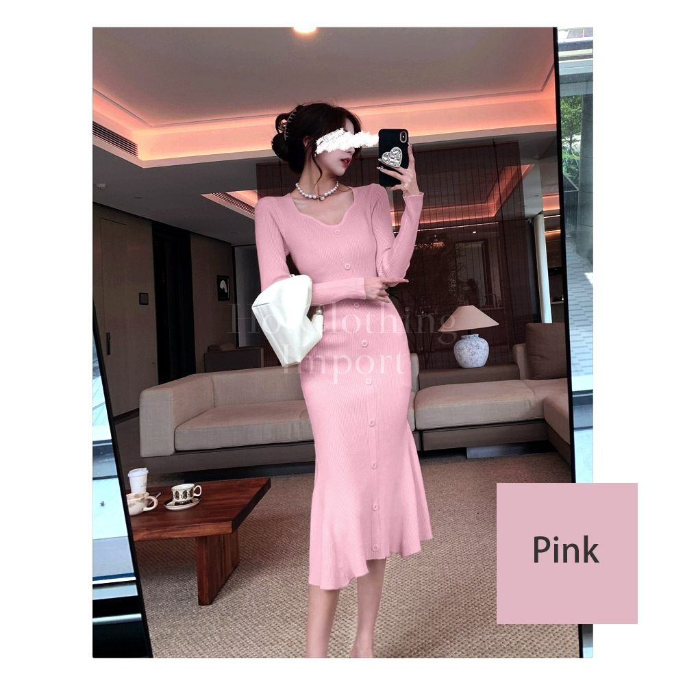 フィッシュテール Vネック ニットワンピース セクシー マキシ丈 ロング Fishtail V-neck knit dress cop-23004