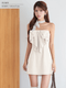 胸元の大きなリボンが印象的なフェミニンミニドレス。