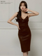 【予約 11月中旬~11月下旬入荷予定】[Veautt] スタッズ チェーンストラップ ミディアム丈 タイトドレス|上品 エレガント 清楚 大人 きれいめ パーティー お呼ばれ 二次会 演奏会 発表会 フォーマル ワンピース VT082523