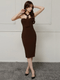 Veauttらしい上品さと艶感を兼ね備えた、ミディアム丈タイトドレスです。