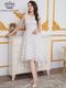 立体感のある花柄ジャガード生地が華やかで上品な印象を与えるミディアムドレス。