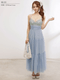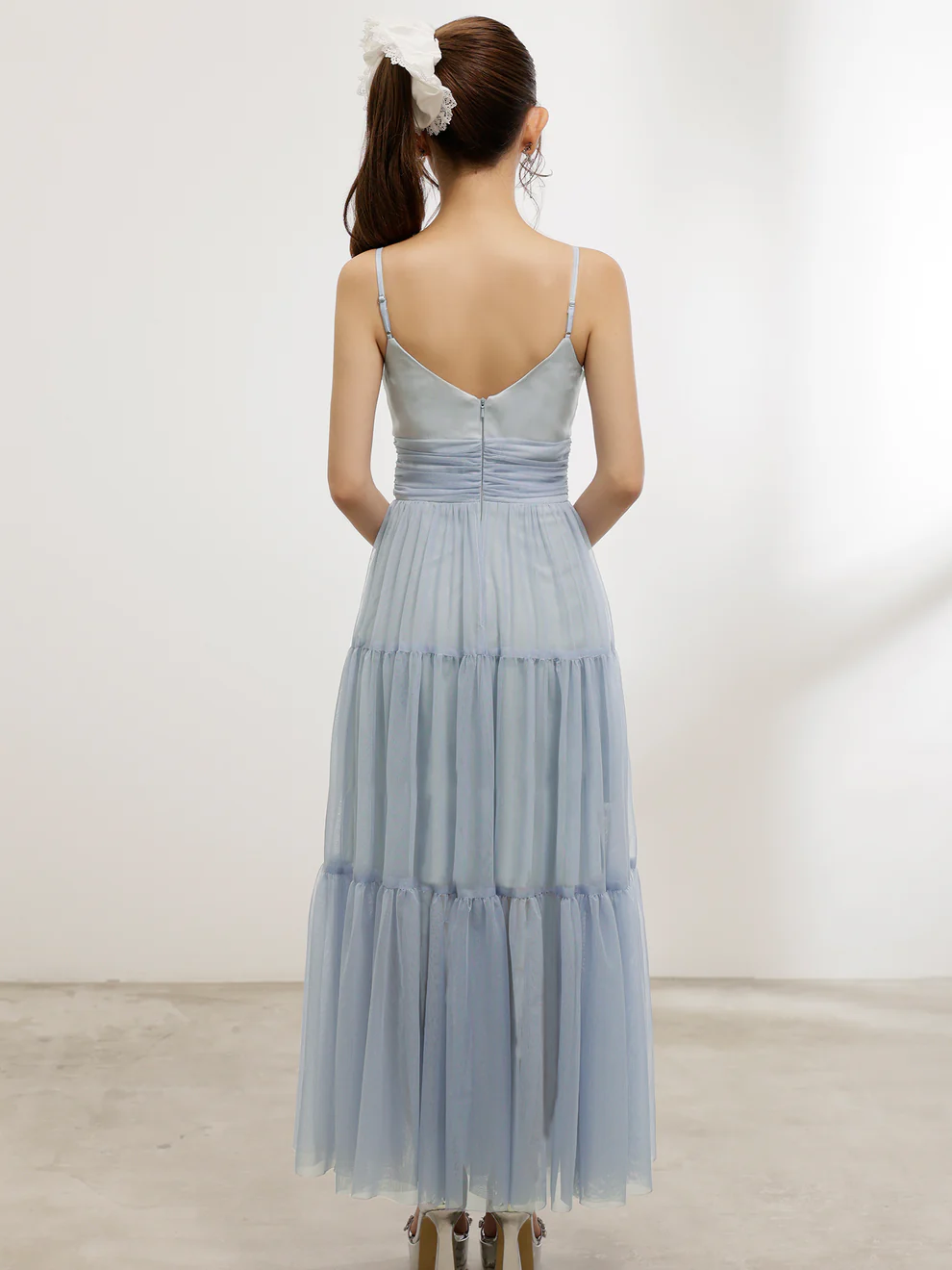 予約(12月上旬~12月中旬入荷予定)【AngelR/エンジェルアール】 クリアビジュー×ティアードチュール ロングドレス キャミ マキシ丈 フレア 上品 可愛い ベージュ アイスグレー ブルー AR25877