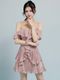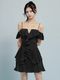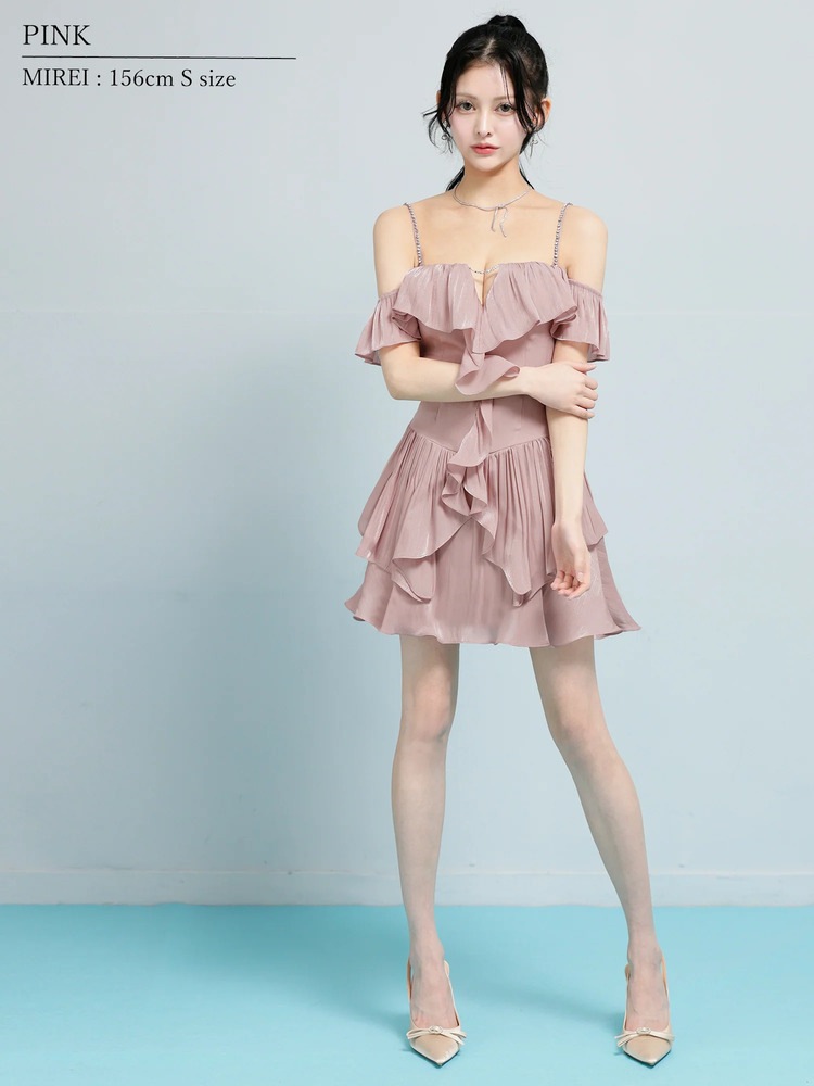 AngelR AR26806 オフショル フリル フレア マイクロミニドレス|シフォン バストカット ビジューショルダー フェミニン キャバドレス