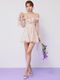 フラワープリントを全体にあしらった、華やかさと軽やかさを兼ね備えたミニドレス。