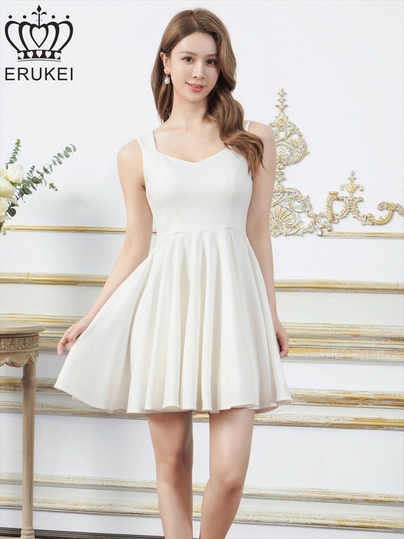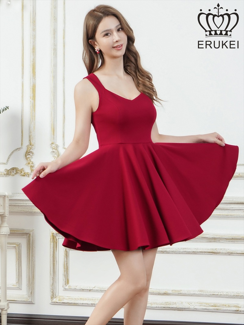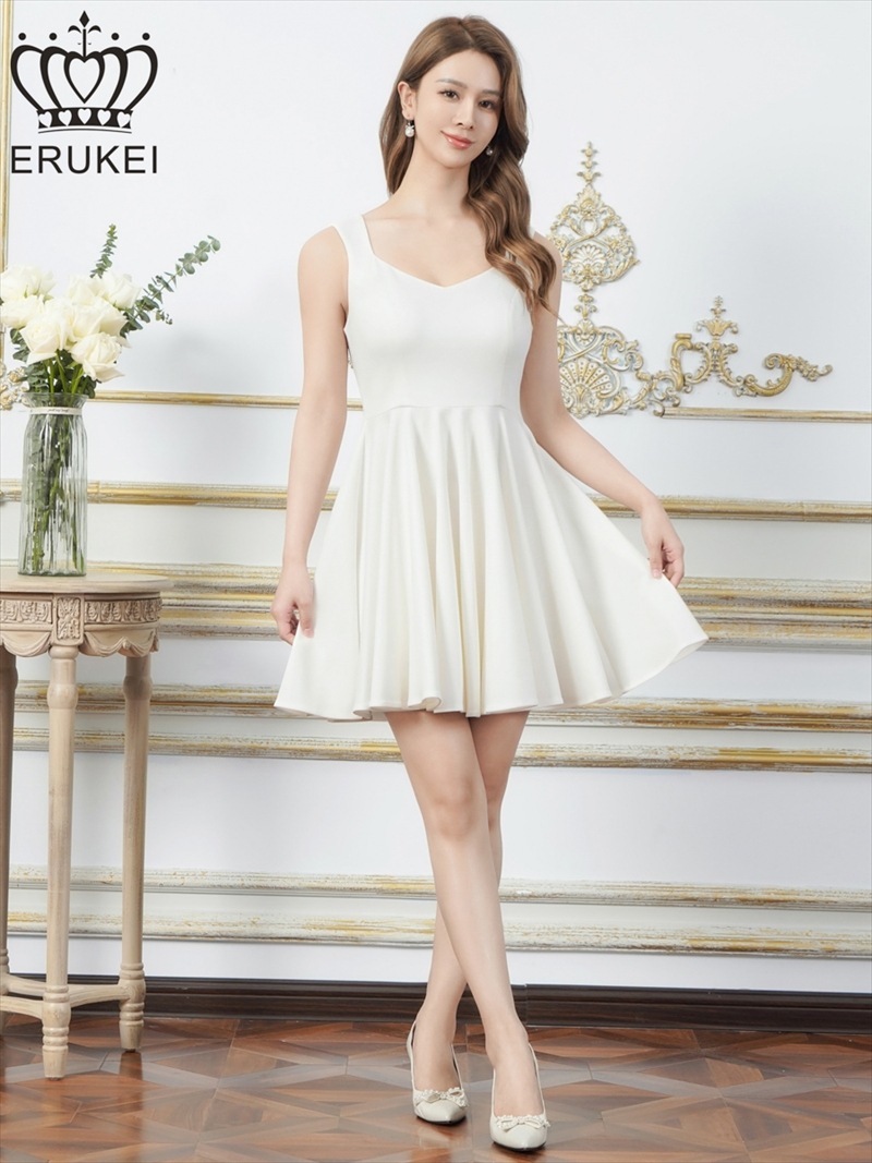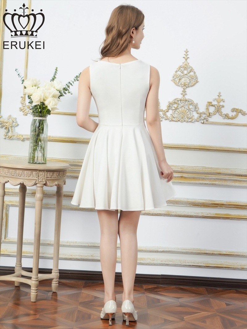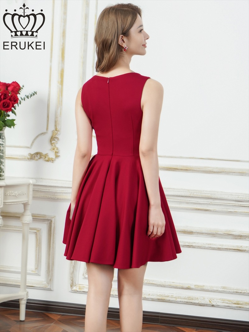 [ERUKEI] 2color ワンカラー シンプル ノースリーブ Aライン フレア ミニドレス ワンピース レッド ホワイト エレガント モダン 可愛い キュート フォーマル ゴージャス 大きいサイズ 特別なイベント 衣装 撮影 演奏会 発表会 雪丹 LK E25192