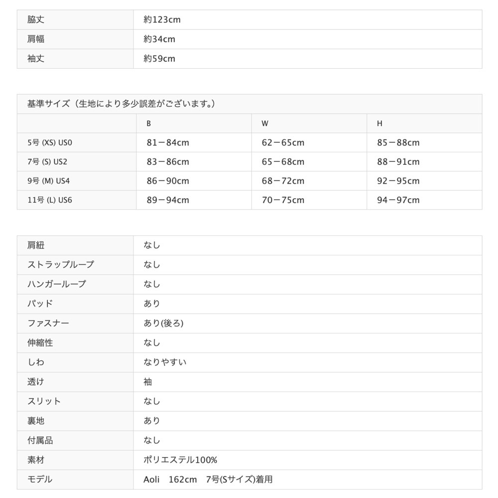 モデル:Aoli 162cm / 7号(S)着用