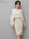 予約(2月中旬~2月下旬入荷予定)Veautt ヴュート シフォンケープ 2WAY レイヤード タイト ミディアムドレス オープンショルダー 3color(アイボリー/ブラック/ブラウン)VT032603