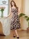 シックな花柄プリントで上品見え。Aライン×ミディ丈で体型カバー、露出控えめで会社行事やお食事会にも◎結婚式・披露宴・二次会、演奏会・発表会・撮影衣装まで活躍。