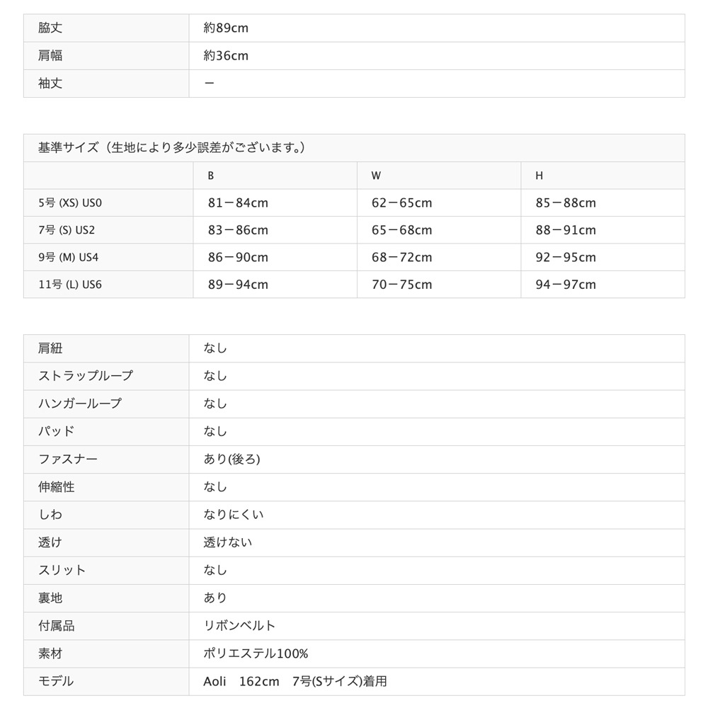 背中ファスナー仕様で着脱しやすく、裏地付きで安心感のある着用感。