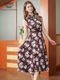 オシャレなハイネックデザインに、クラシカルな花柄プリントが映えるミディアムドレスです。