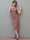 胸元からウエストにかけて施された繊細なドレープが立体感を生み、自然なくびれを演出します。