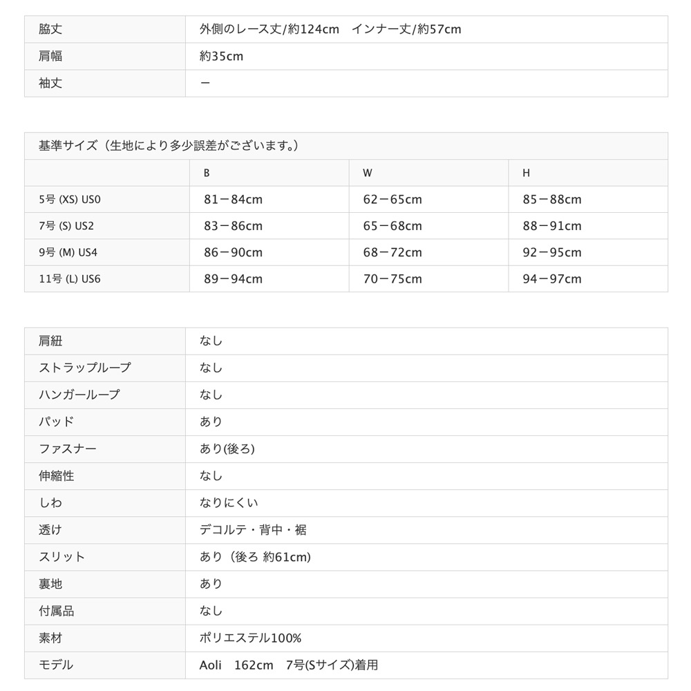 ※透け感のある箇所(デコルテ・背中・裾)はインナーの色で印象が変わるため、ベージュ系など馴染む色がおすすめです。