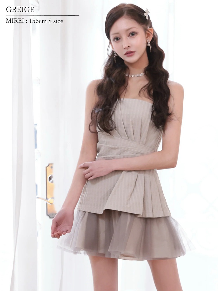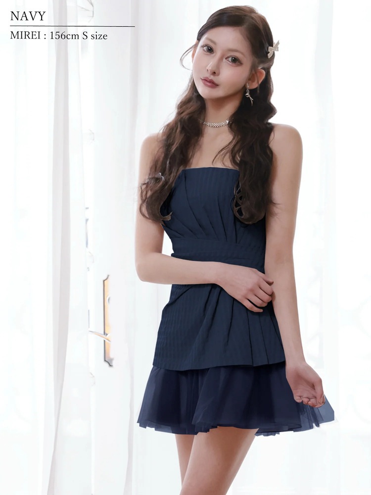 予約(3月下旬~4月上旬入荷予定)[AngelR] ベアトップ ギャザー ウエストタック 立体切替 シフォン フリル フレア マイクロミニドレス キャバドレス ナイトドレス パーティ 二次会 クラブ ラウンジ キャバクラ AR26314 ネイビー 生成り グレージュ